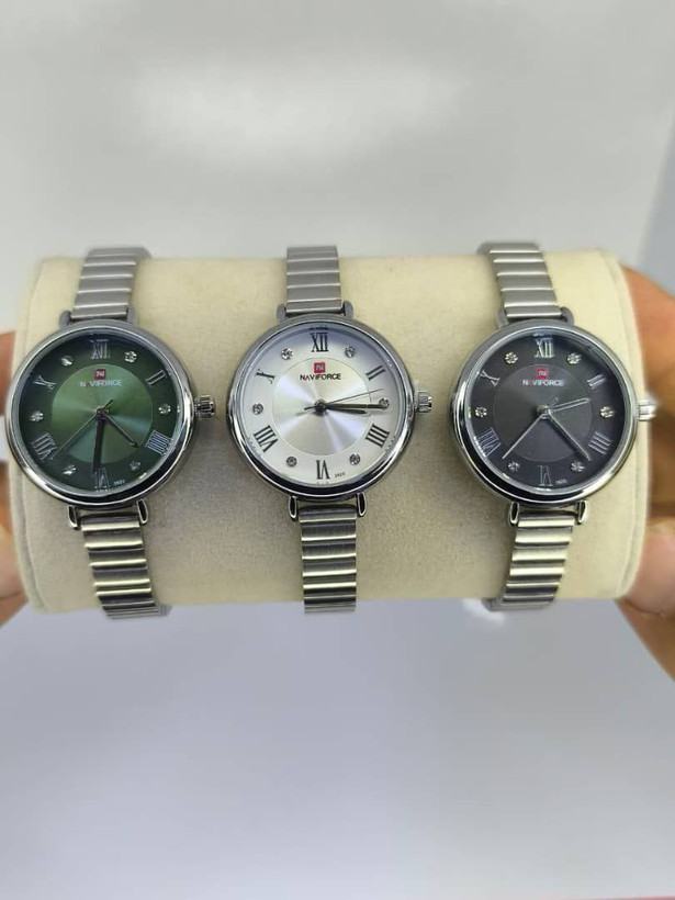 ساعت مچی زنانه ناوی فورس موتور ژاپن ضد آب رنگ ثابت قفل پروانه ای کیفیت درجه یک بند و بدنه استیل